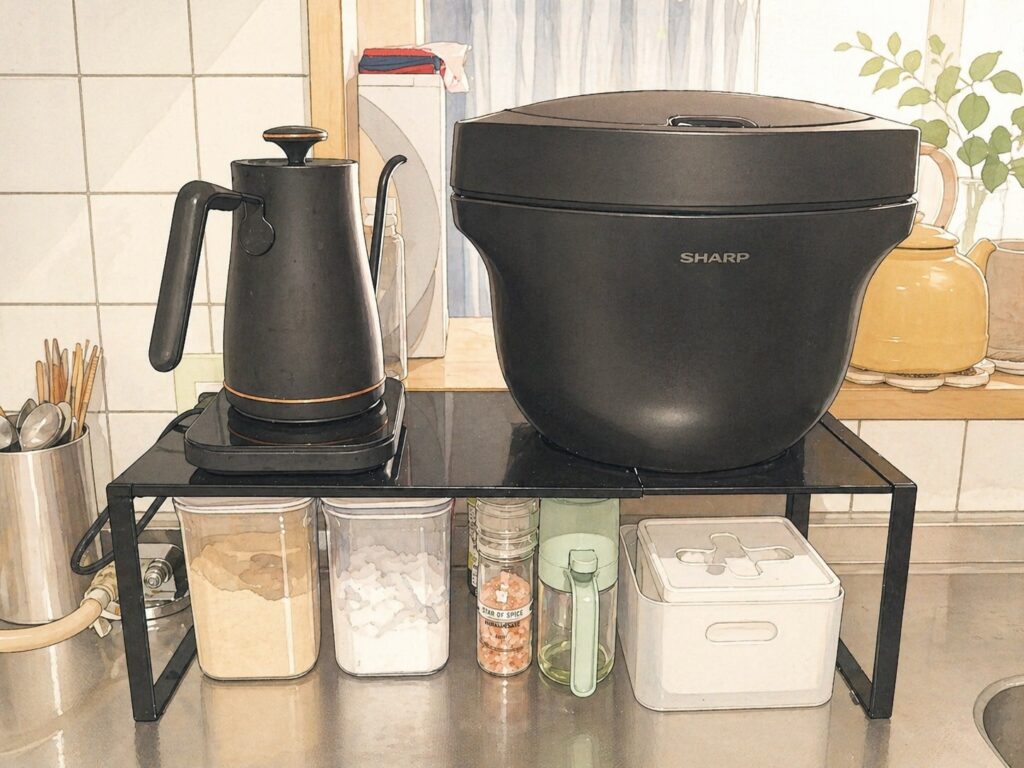 想像より存在感が大きく、キッチンの収納や作業スペースを圧迫してしまうケースがあります。