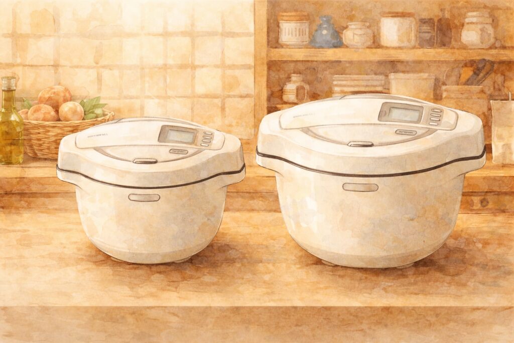 ホットクックはサイズ選びで使い勝手が大きく変わります。