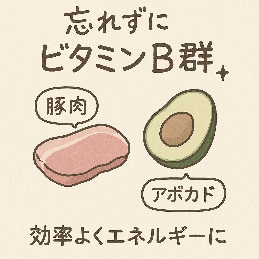✅ 疲労回復のカギ「ビタミンB群」も忘れずに