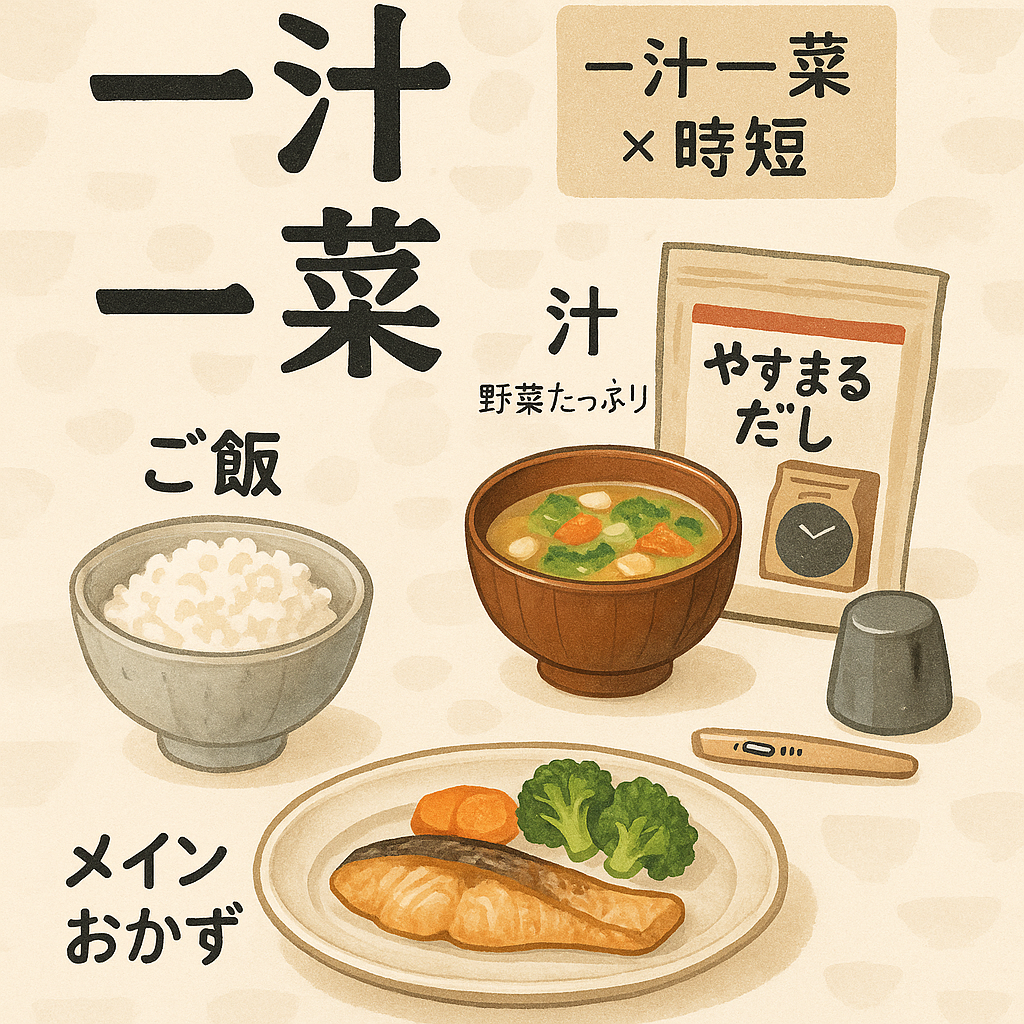 そんなときこそ、冷蔵庫の野菜をざくざく刻んでお味噌汁にすれば、立派な一汁一菜ごはんに。