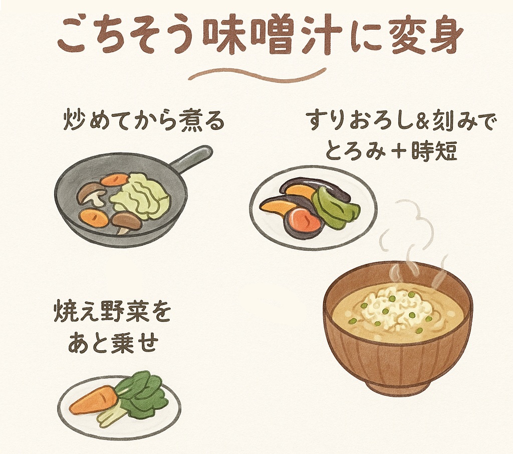 余り野菜が、ちょっと誇らしげな“ごちそう味噌汁”に変身するかもしれませんよ◎