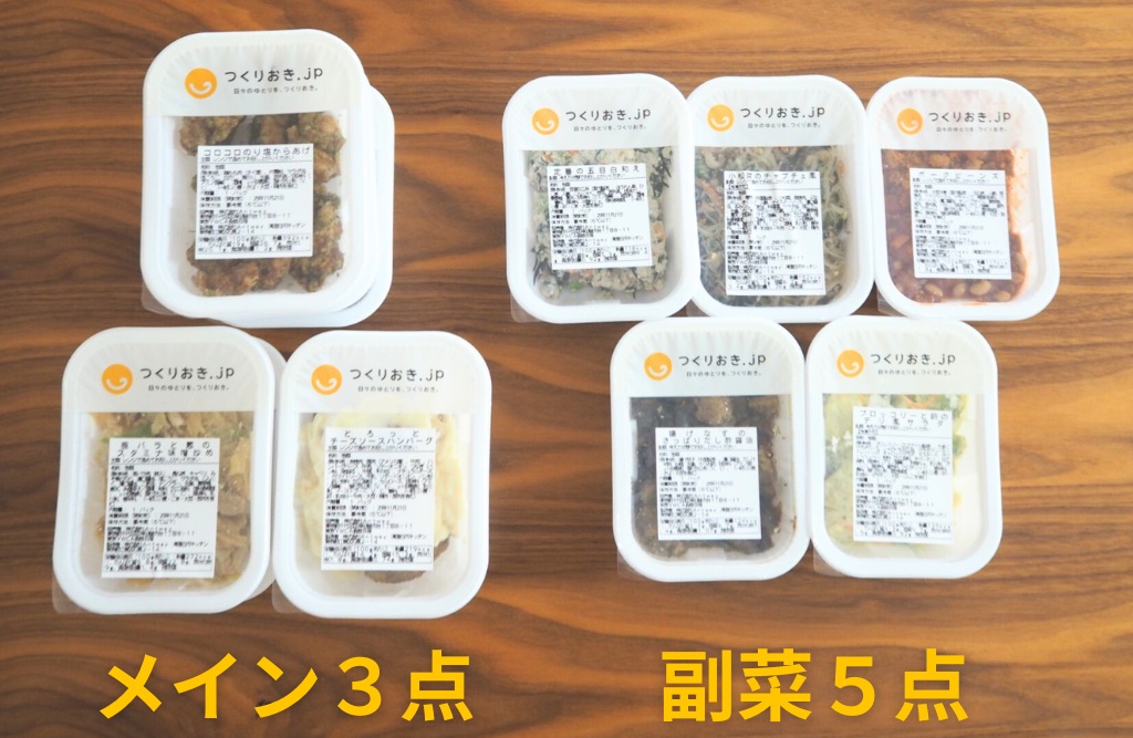 今回届いた メイン3品・副菜5品(計8品) のうち、